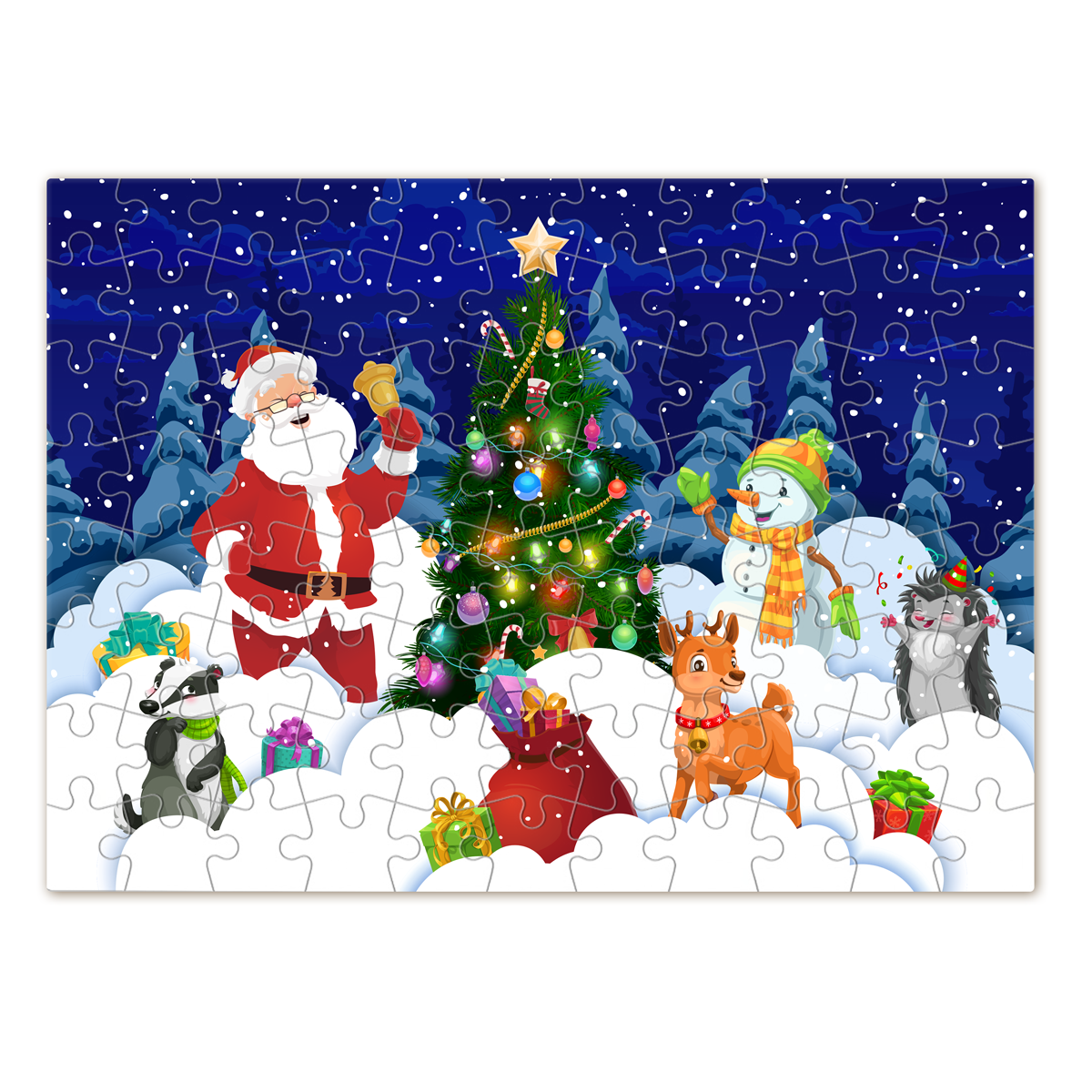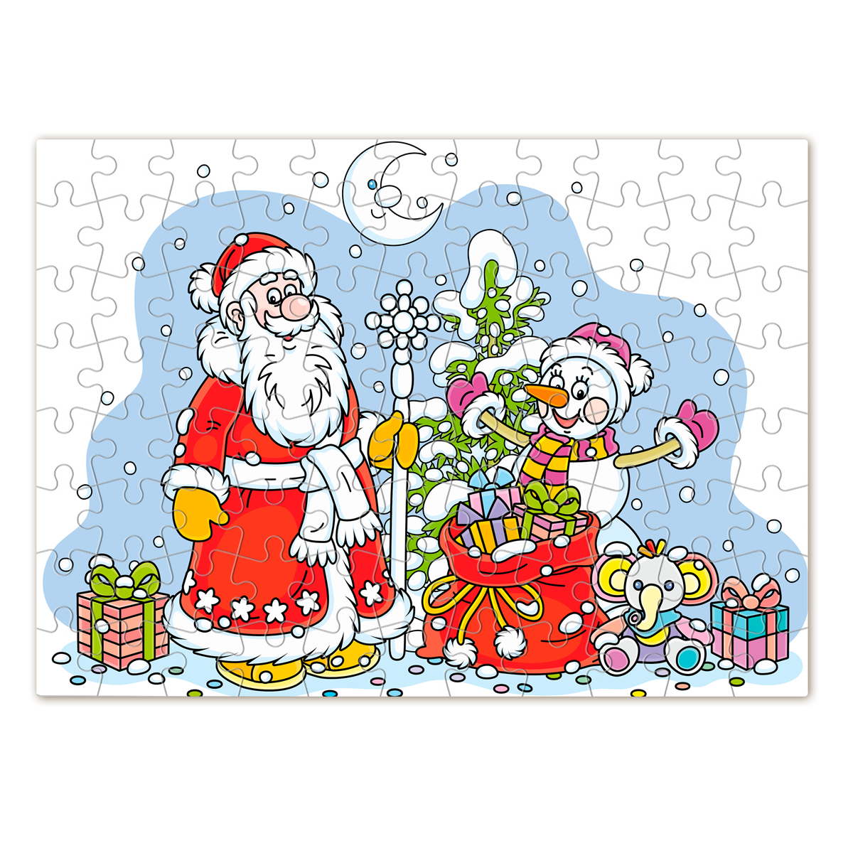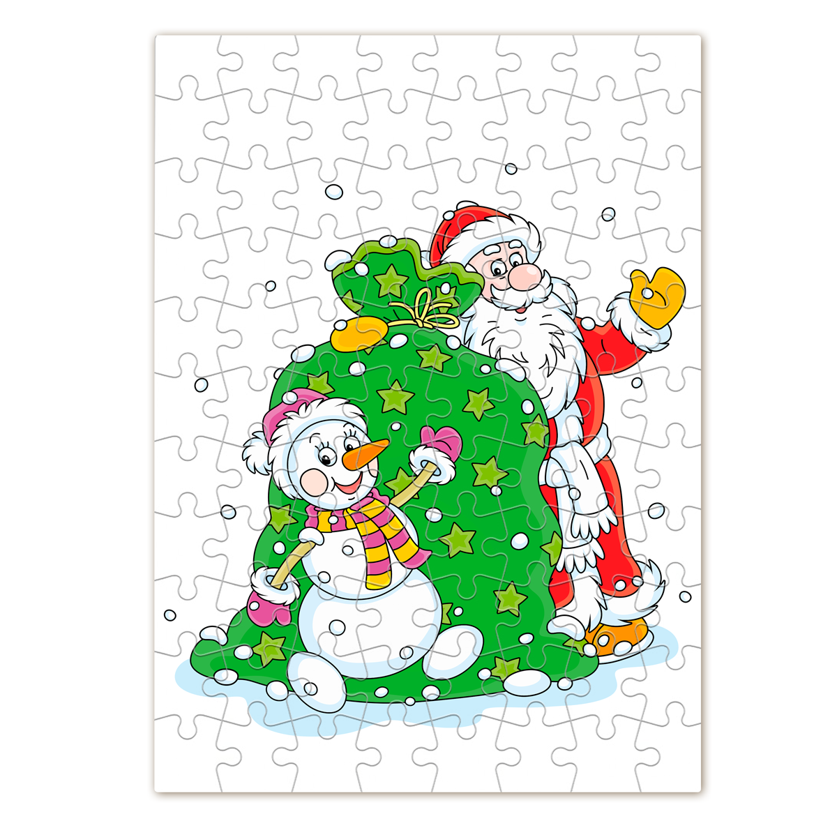Puzzle z nadrukiem – „Mikołaj i Bałwanek z Workiem Prezentów”