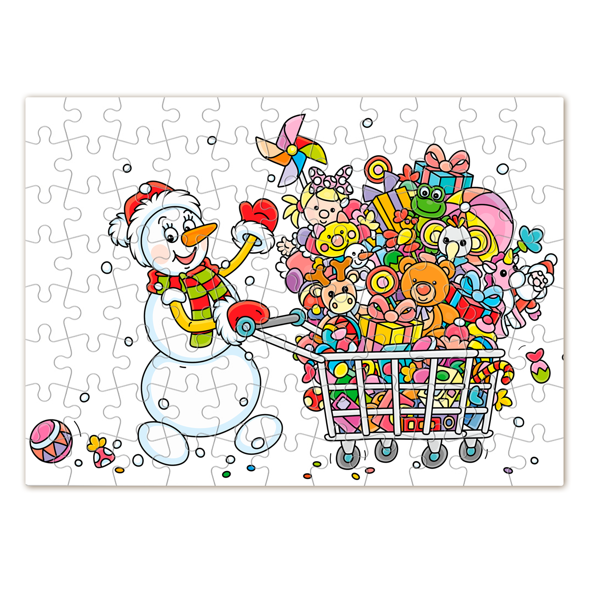 Puzzle z nadrukiem – „Bałwanek z Koszykiem Prezentów”