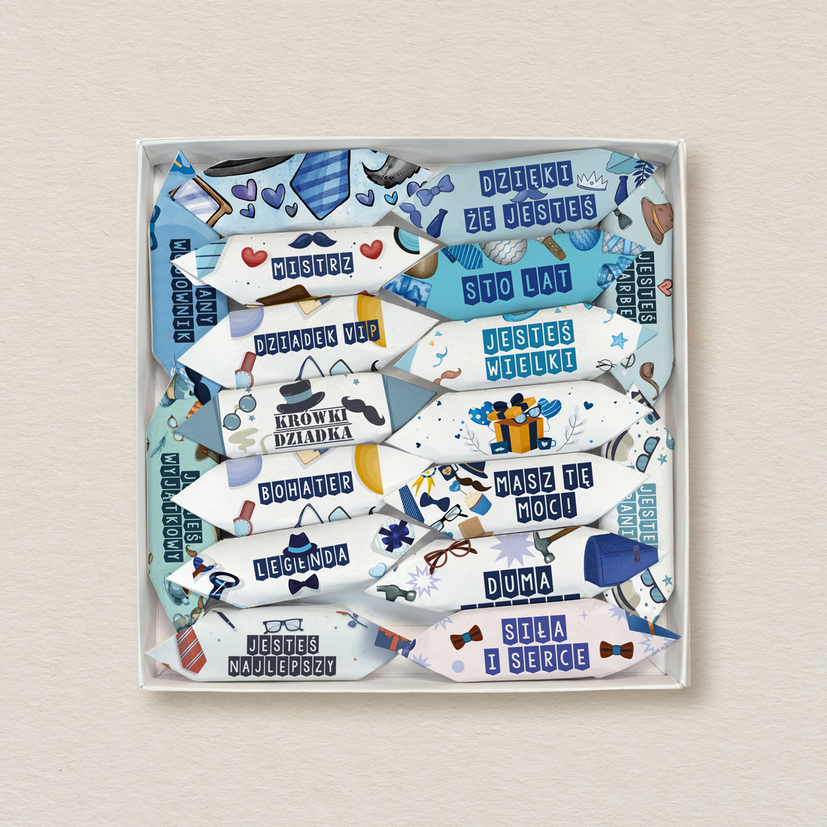Dzień dziadka – Krówki z życzeniami w kwadratowym pudełku