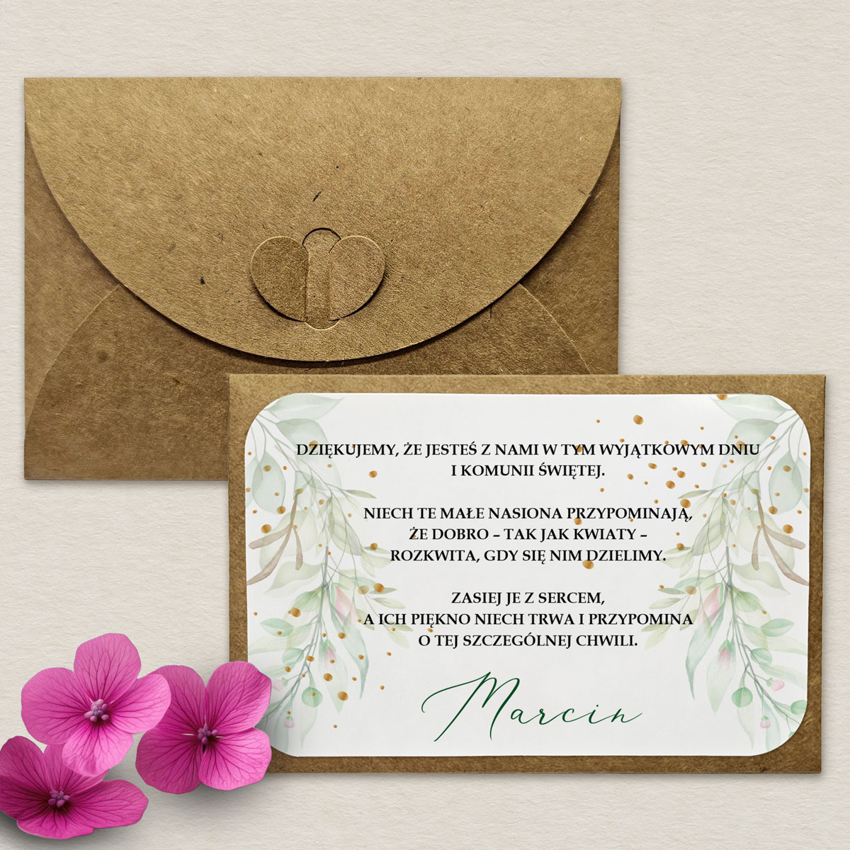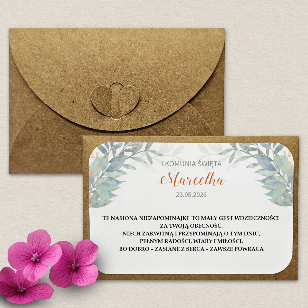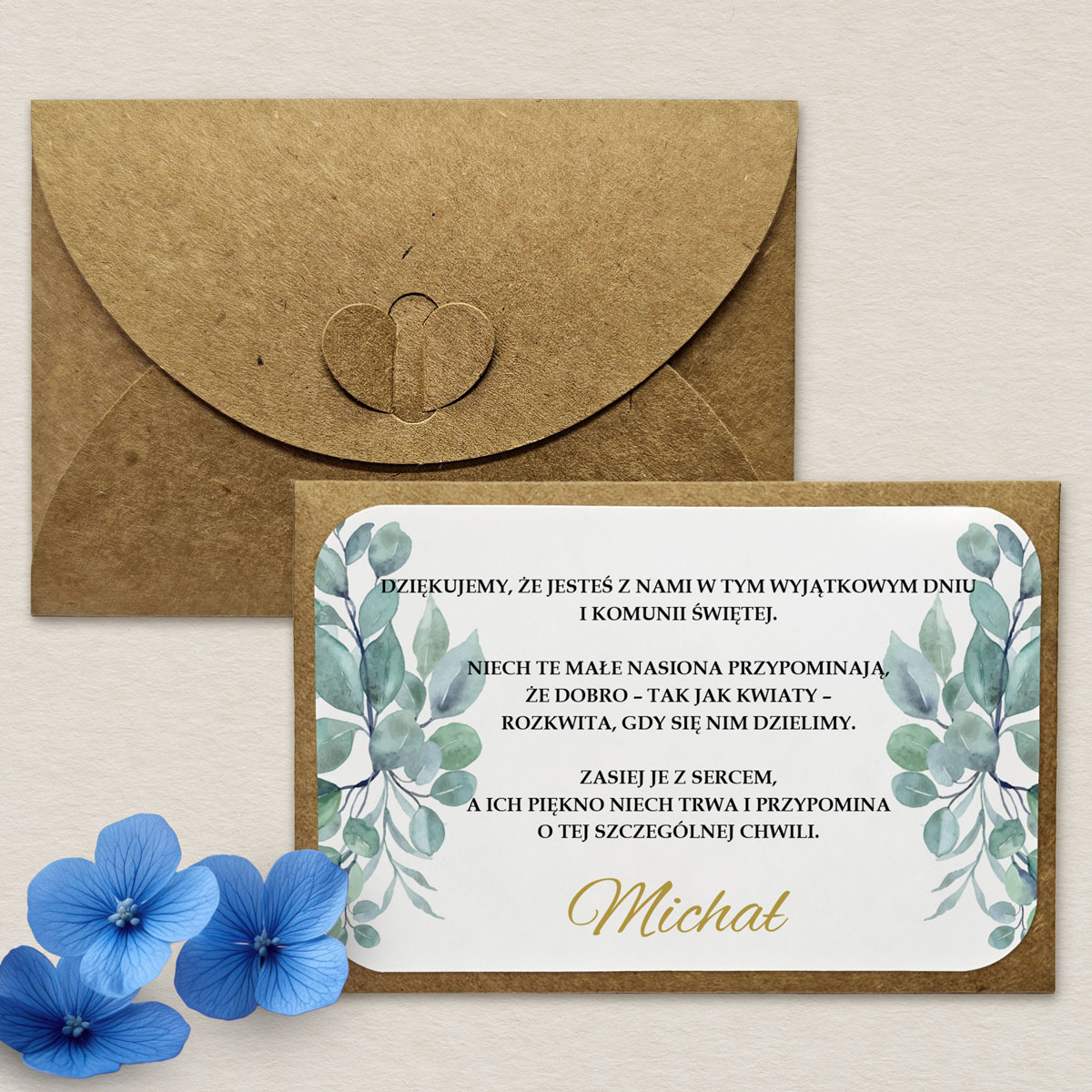 Czekoladki komunijne personalizowane dla gości – 10 szt. | Akwarelowe liście