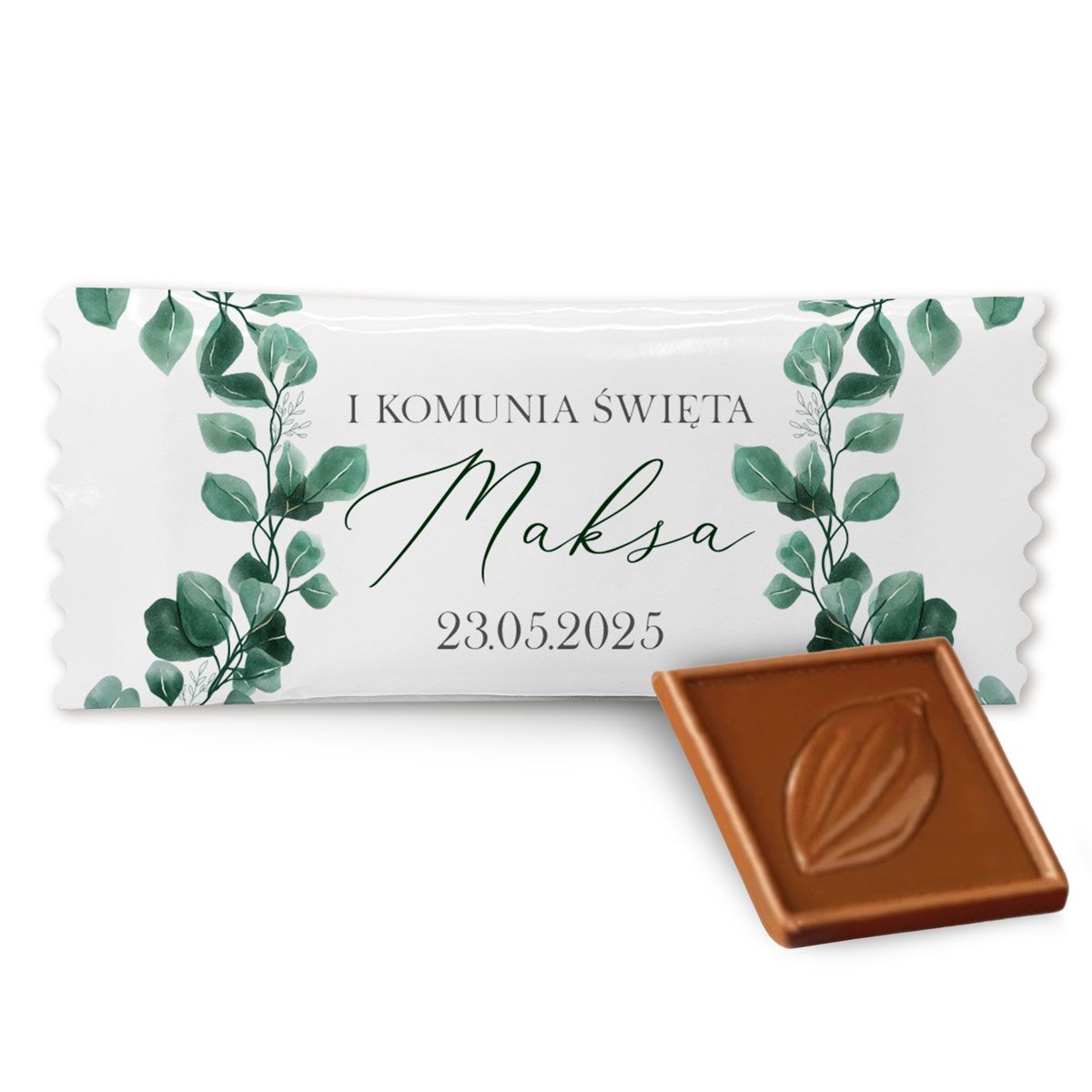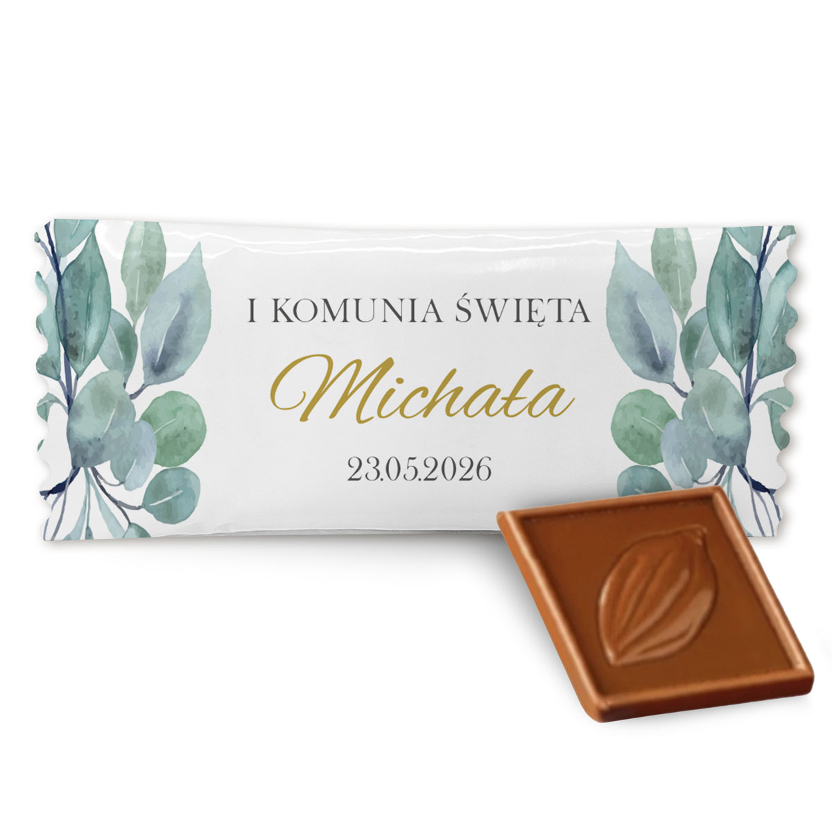 Czekoladki komunijne personalizowane dla gości – 10 szt. | Eukaliptus