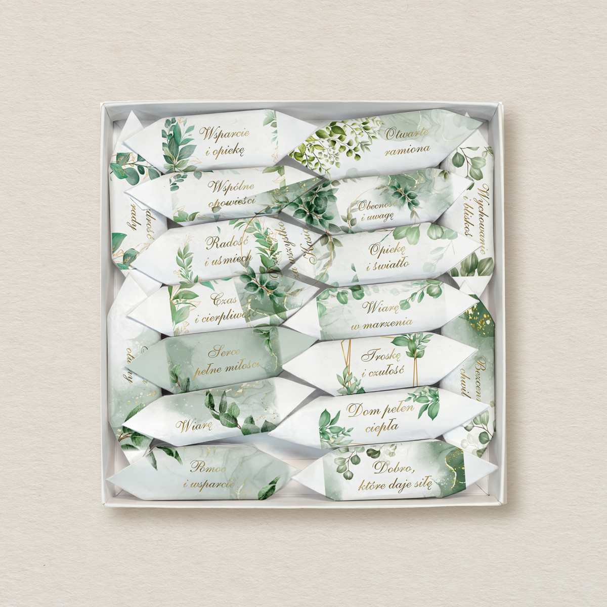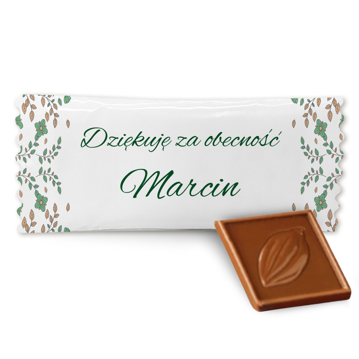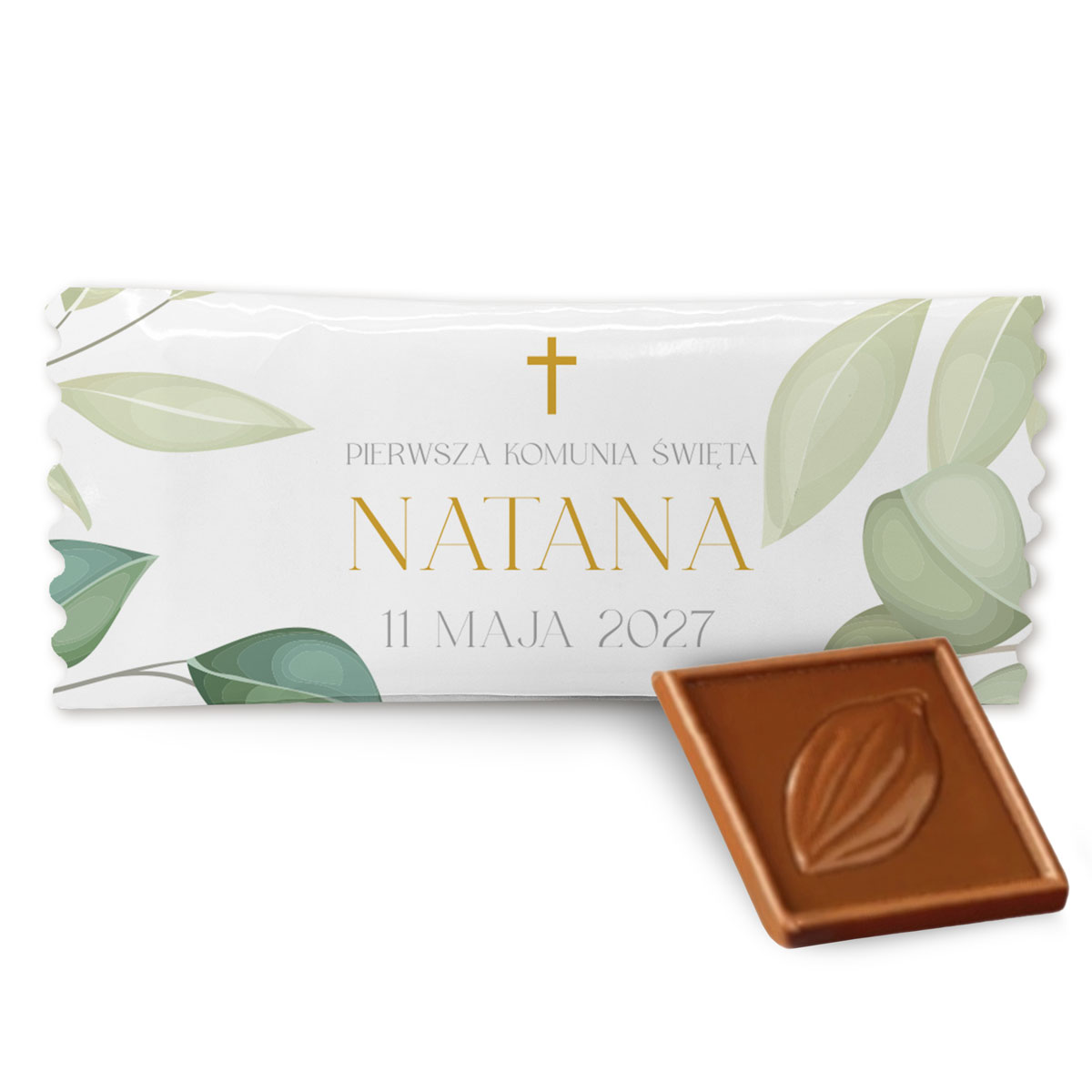 Czekoladki komunijne personalizowane dla gości – 10 szt. | Zielone liście