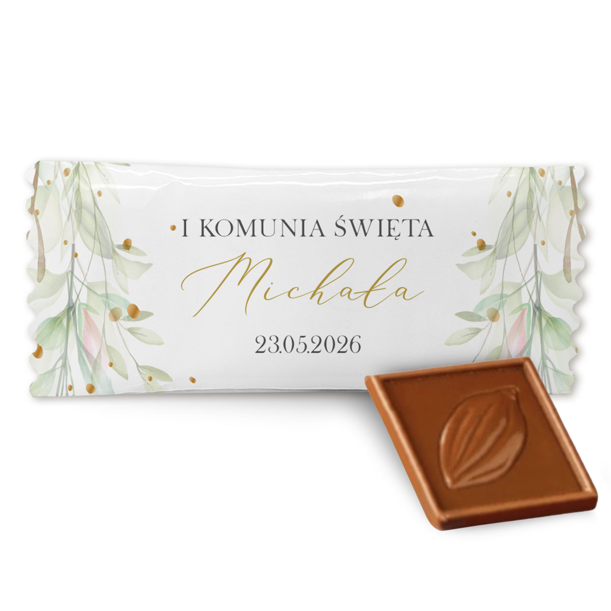 Czekoladki komunijne personalizowane dla gości – 10 szt. | Delikatne gałązki