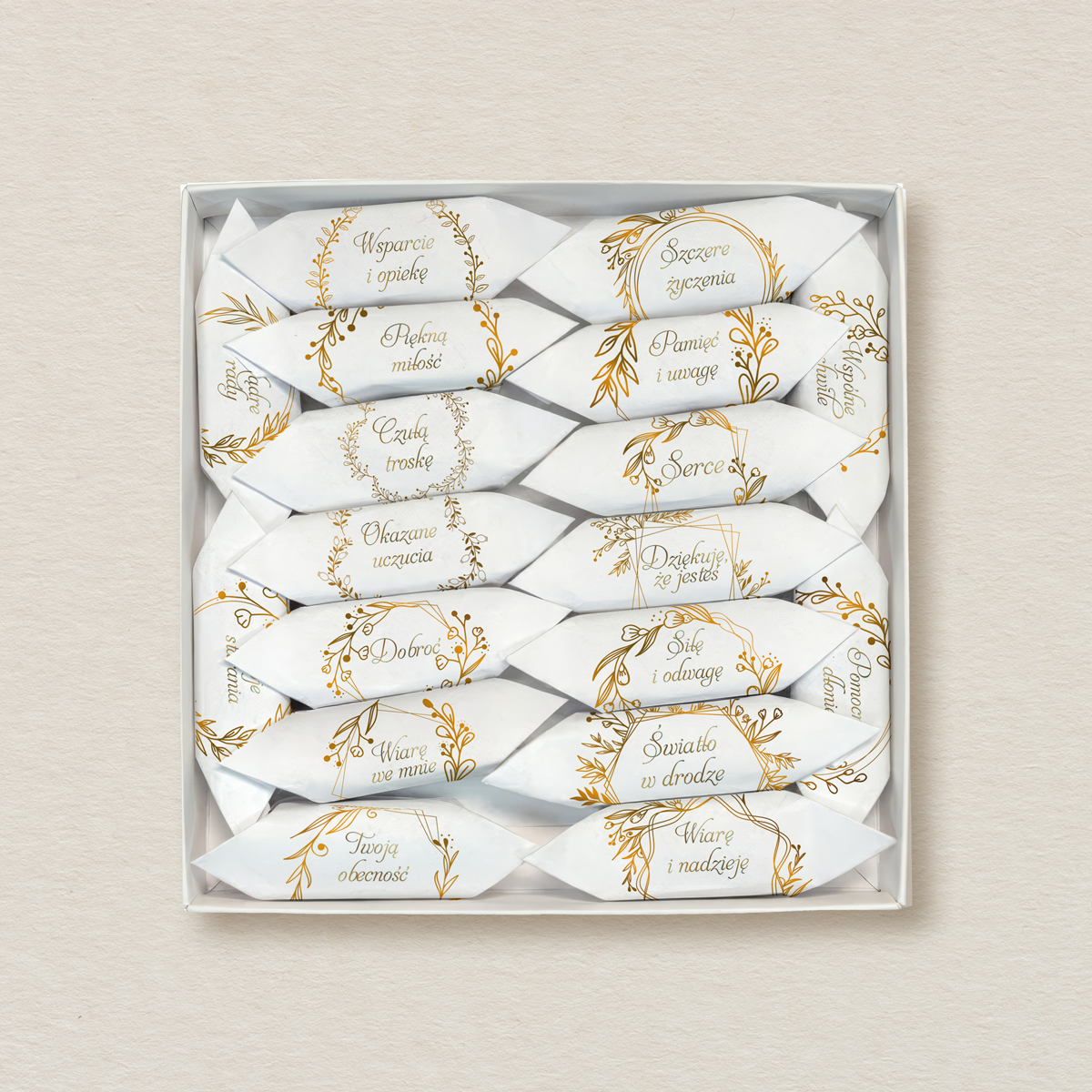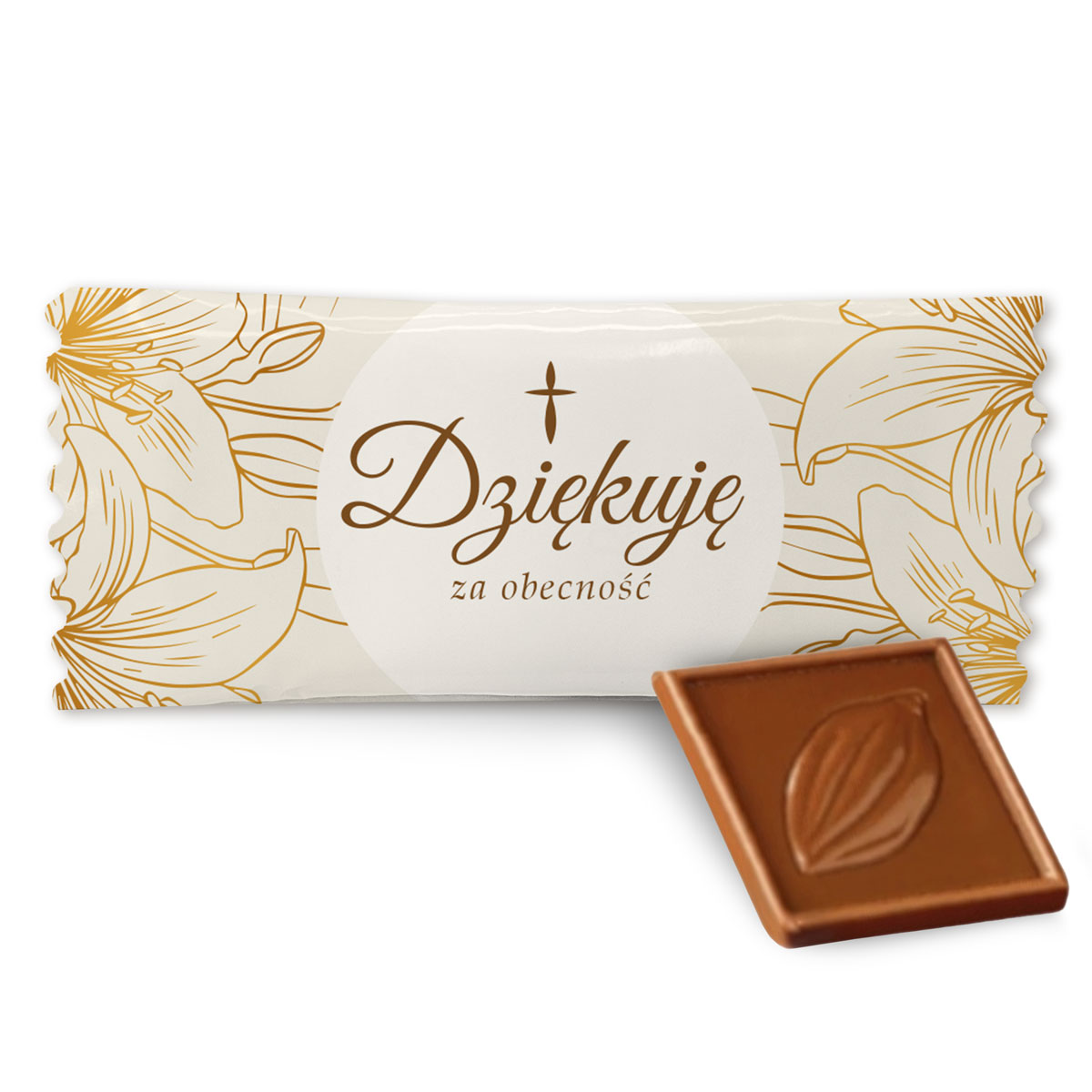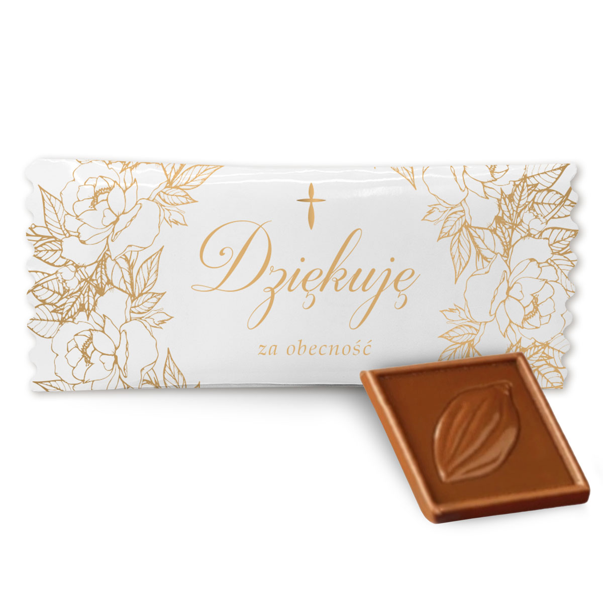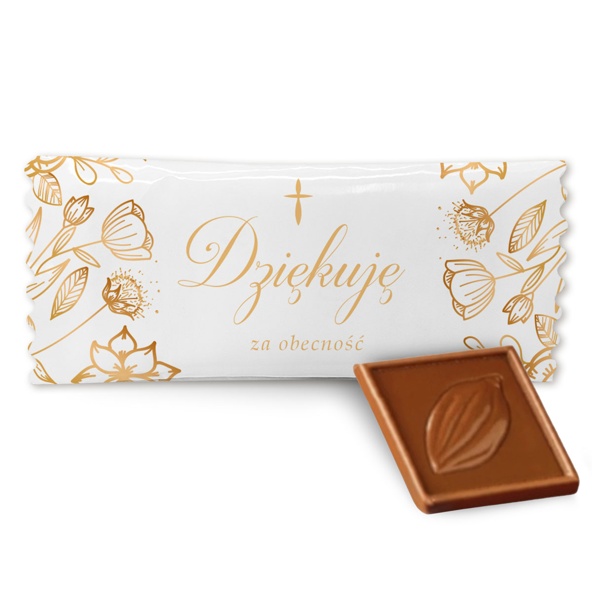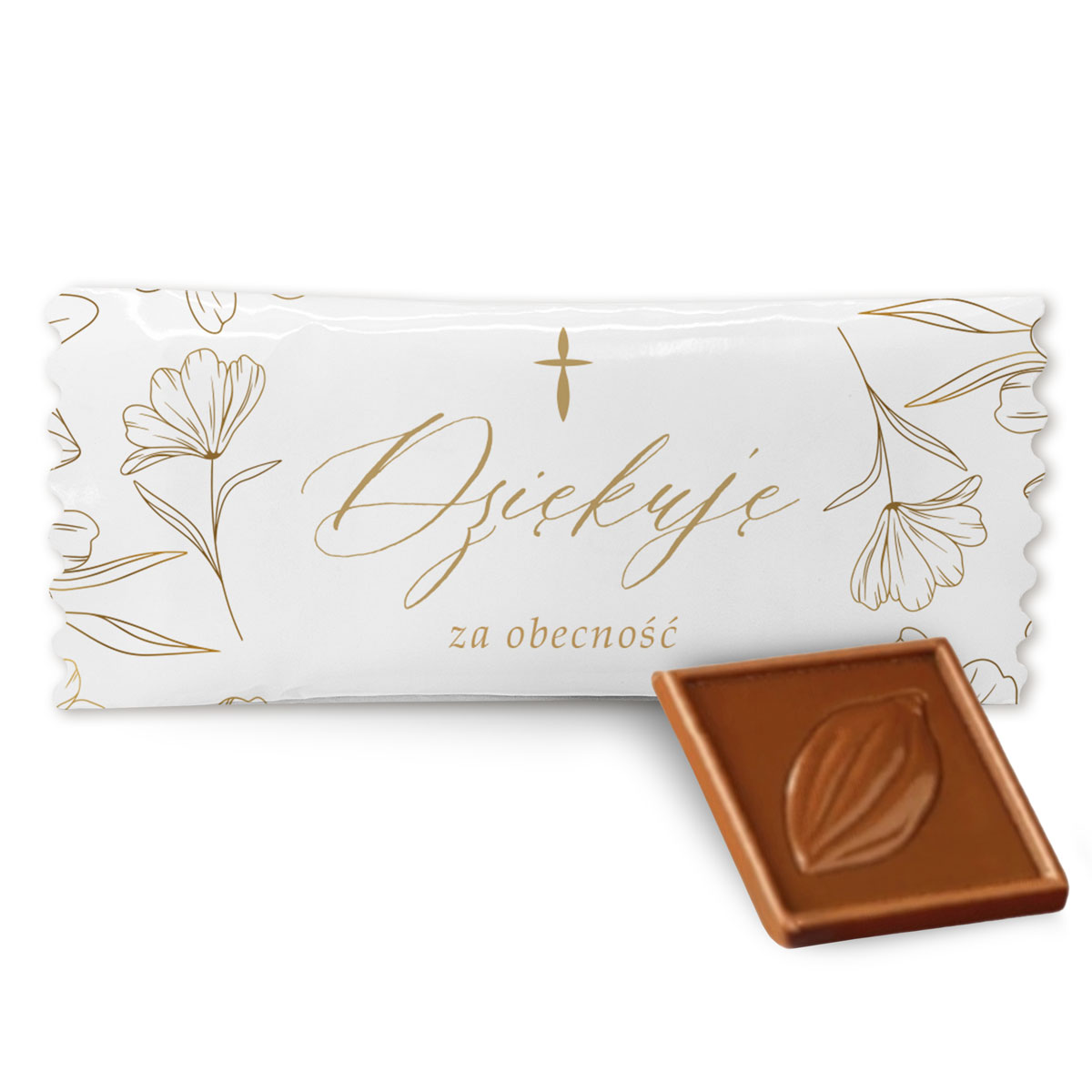 Czekoladki komunijne personalizowane dla gości – 10 szt. | Kwiaty złote
