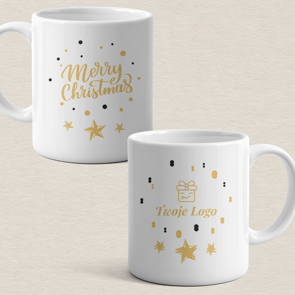 Kubek Świąteczny z nadrukiem – Złote Gwiazdki