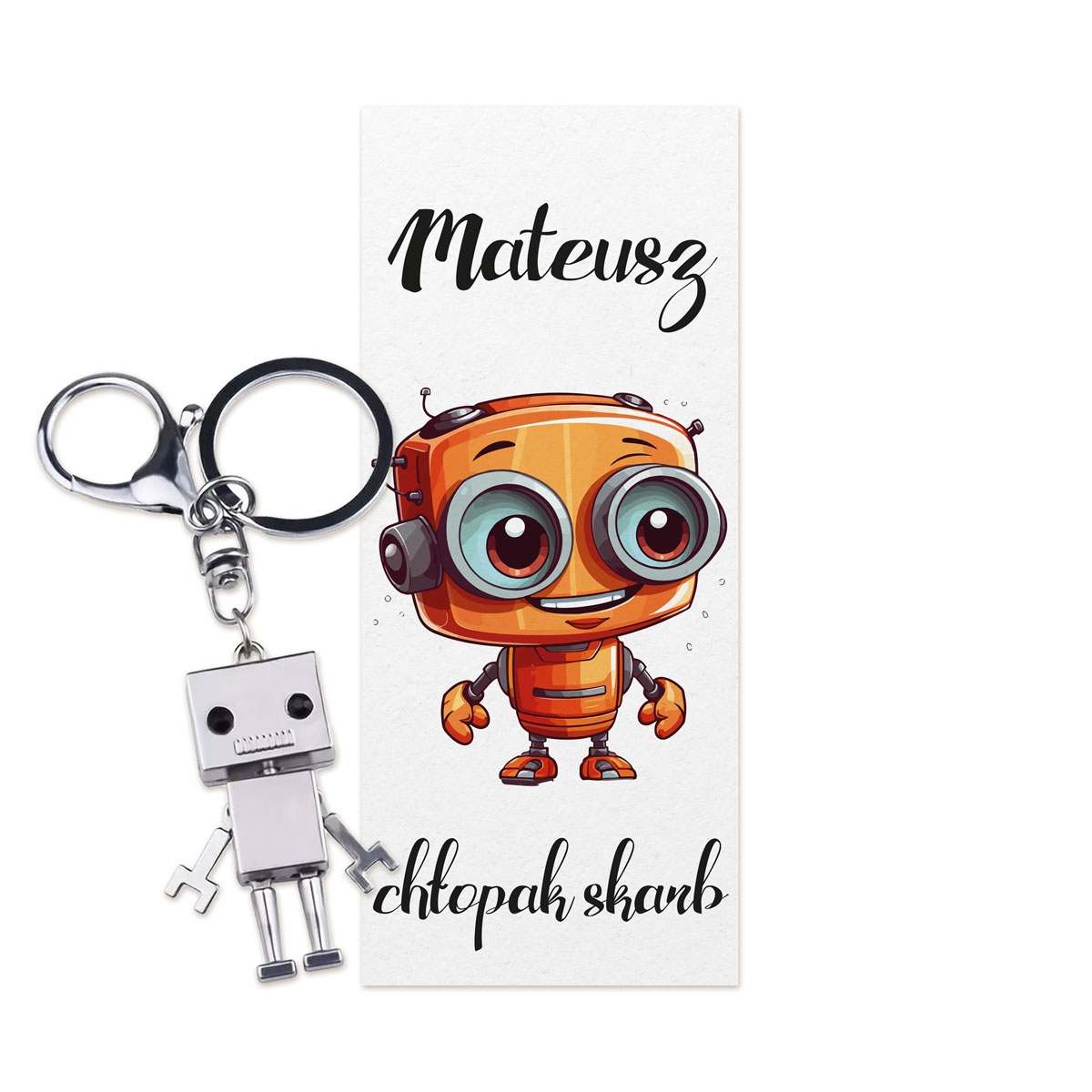 Brelok Robot z karteczką personalizowaną – Chłopak Skarb