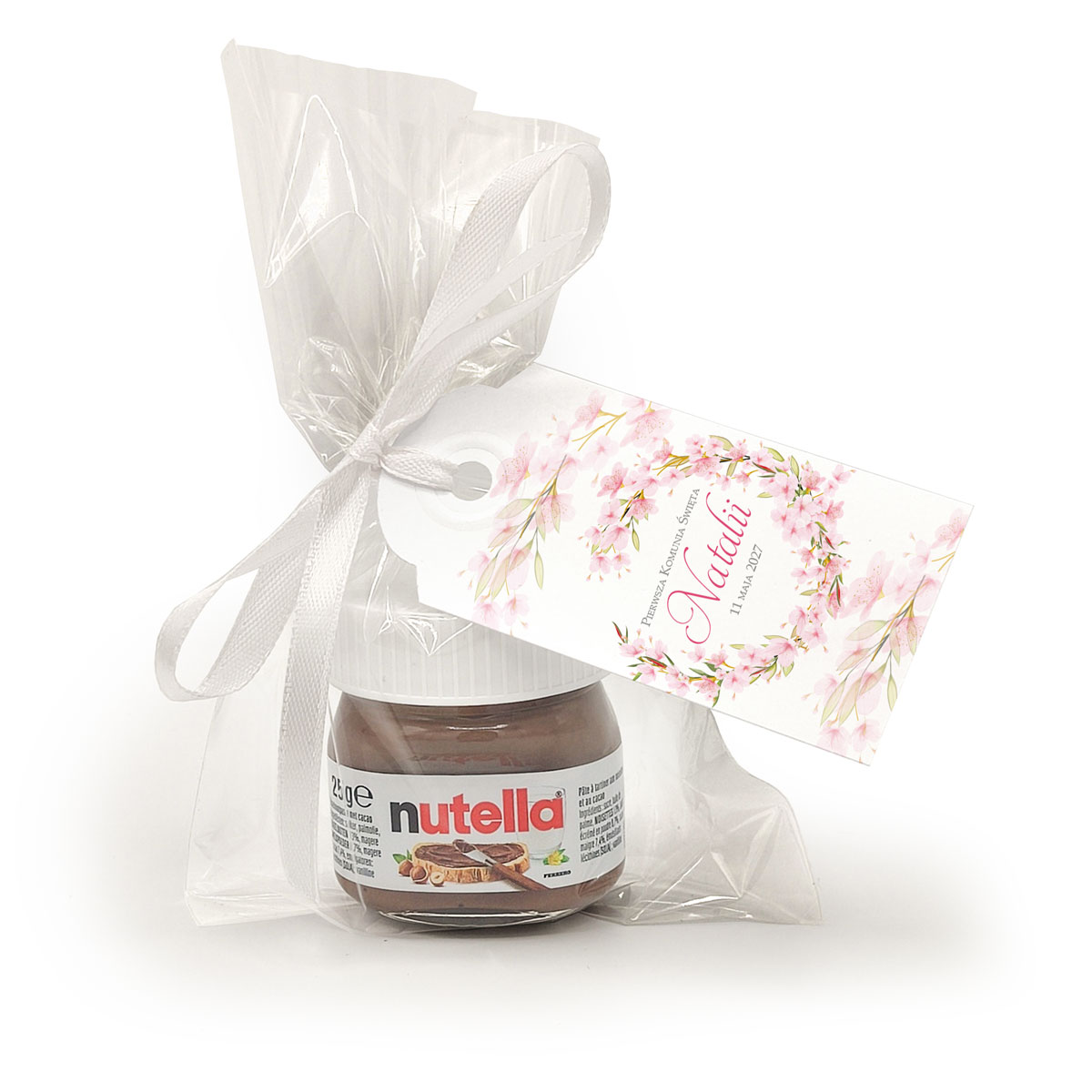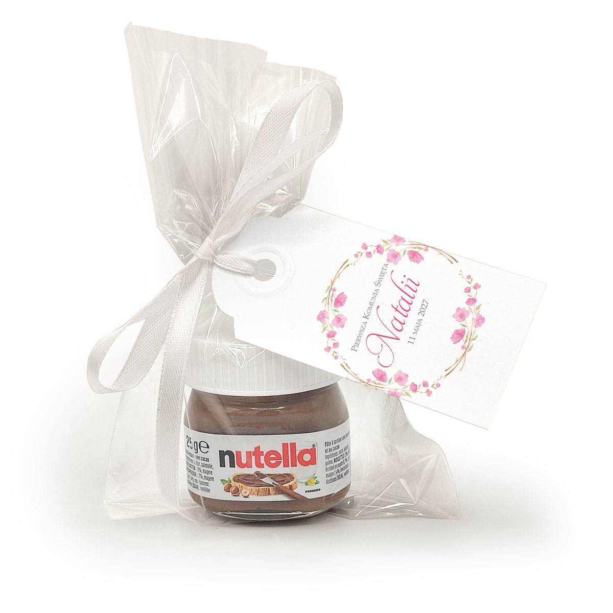 Nutella podziękowanie Komunijne – Delikatne Różowe Kwiaty