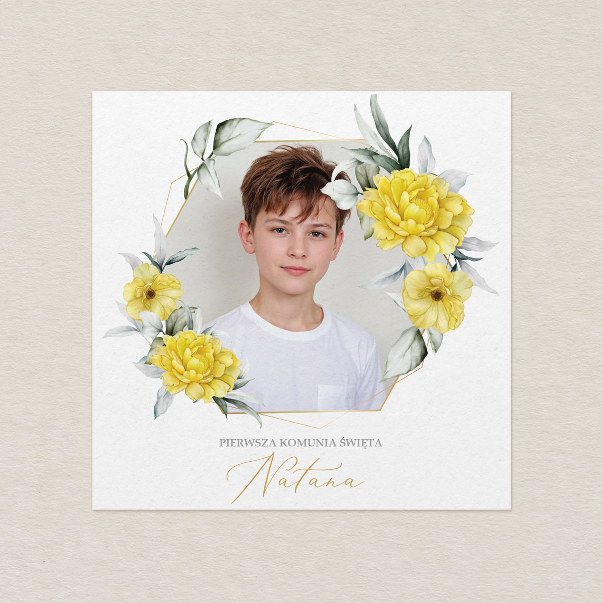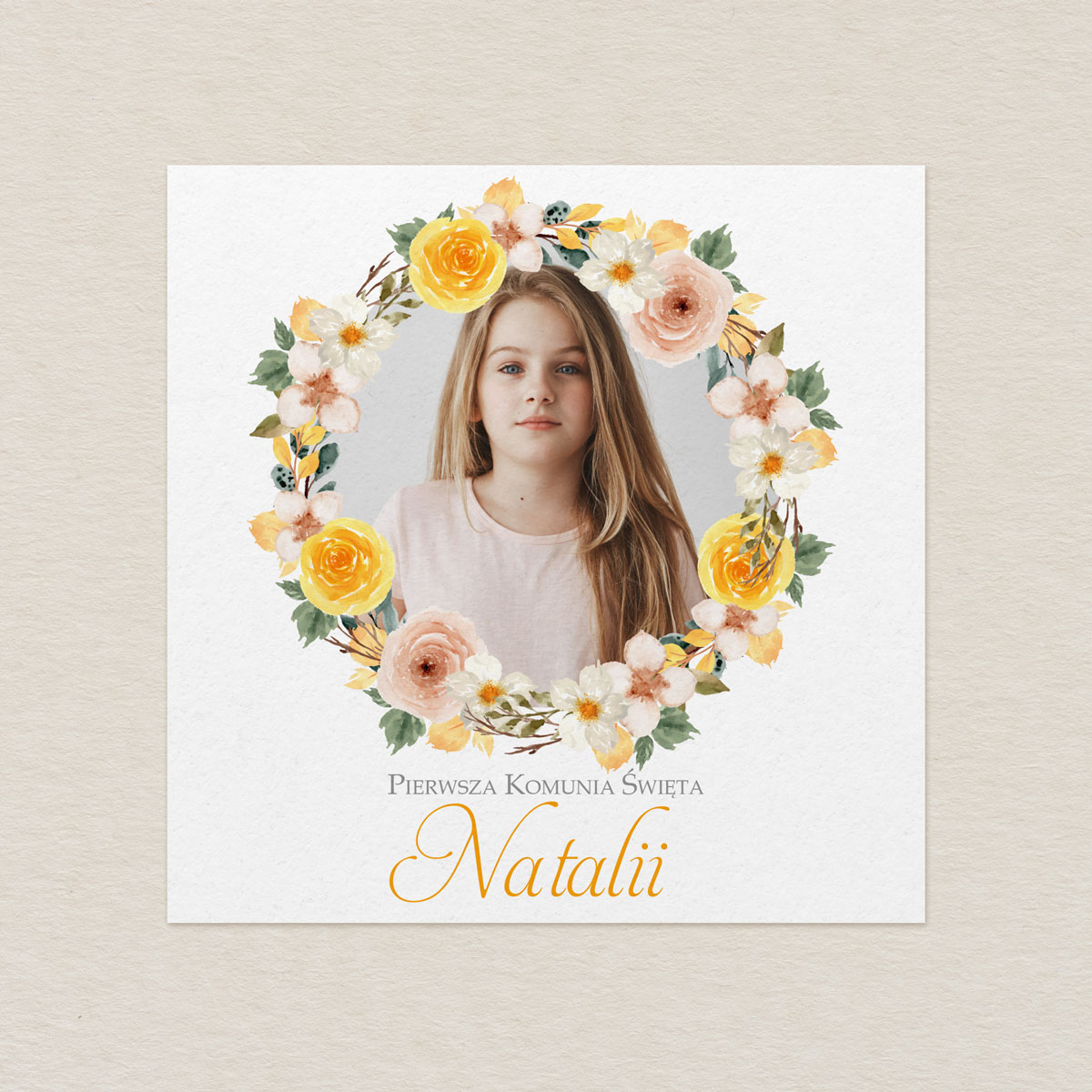 Zaproszenie na Komunię ze zdjęciem – Żółte Kwiaty Elegance