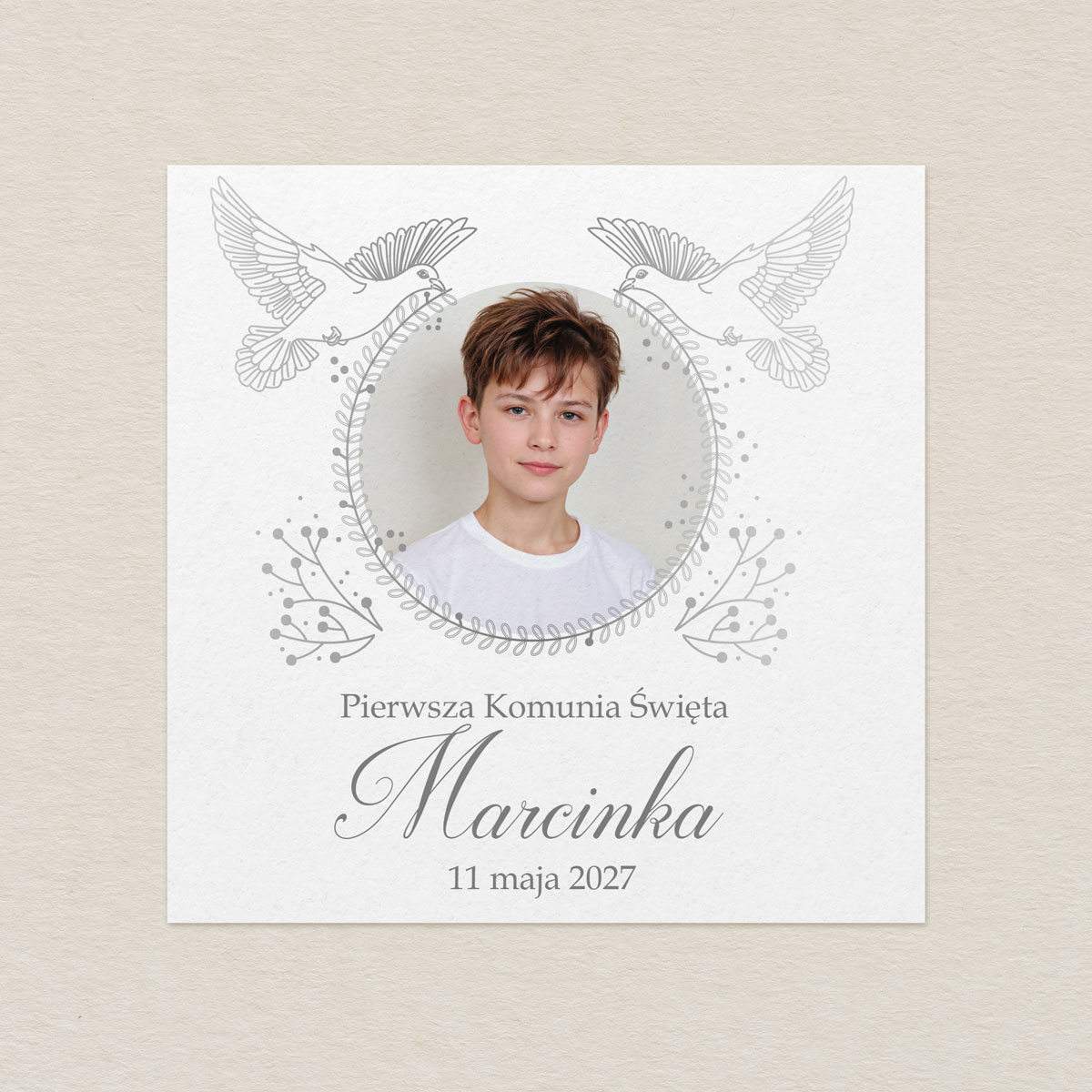 Zaproszenie na Komunię ze zdjęciem – Gołąbki Klasyczne