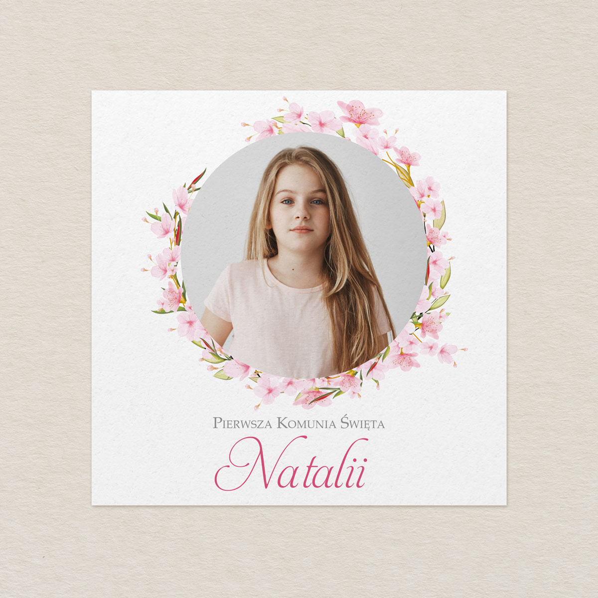 Zaproszenie na Komunię ze zdjęciem – Delikatne Różowe Kwiaty