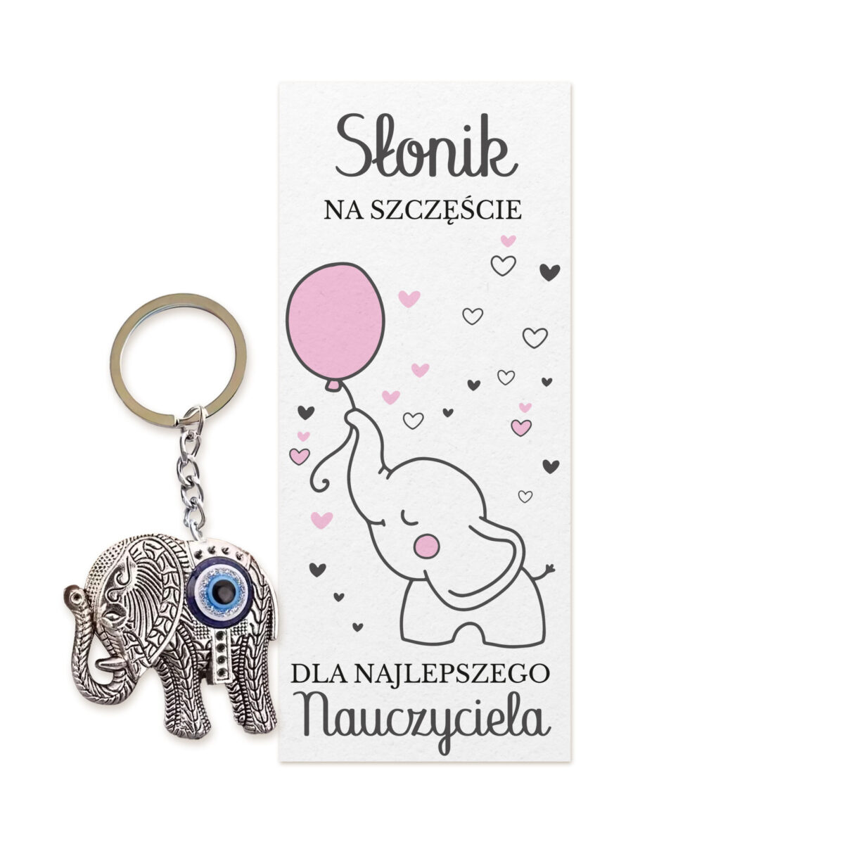 Brelok Słonik dla Nauczyciela – różowe serce wdzięczności