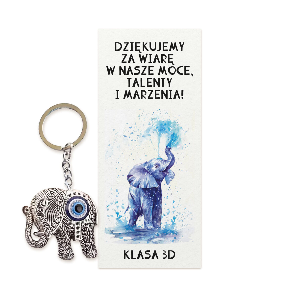 Brelok Słonik dla Nauczyciela – niebieski marzyciel