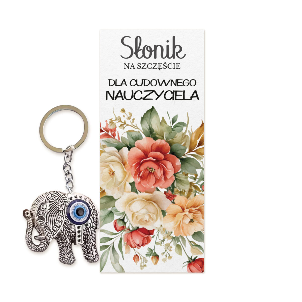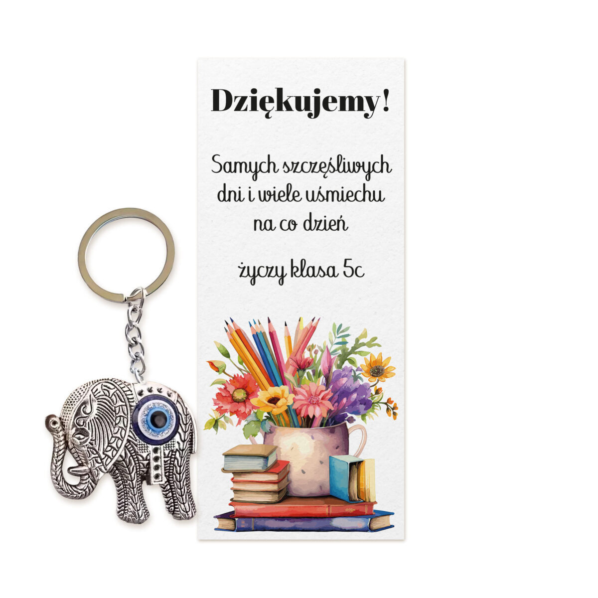 Brelok Słonik dla Nauczyciela – bukiet radości