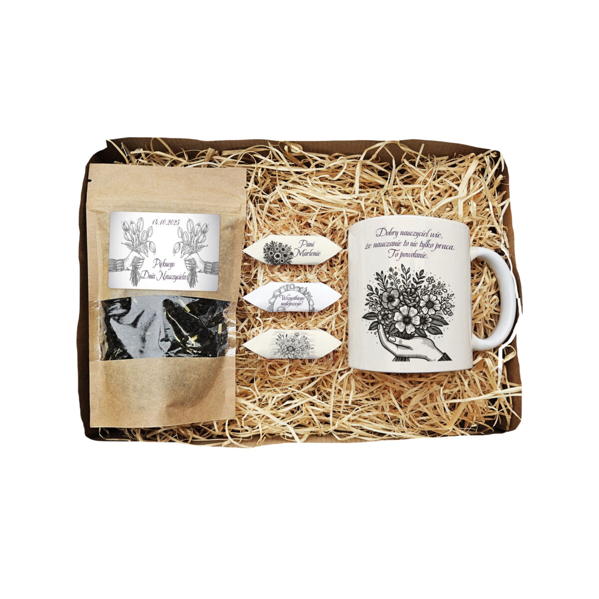 Zestaw Prezentowy dla Nauczyciela – Kubek, Herbata i Słodkości – Bukiet