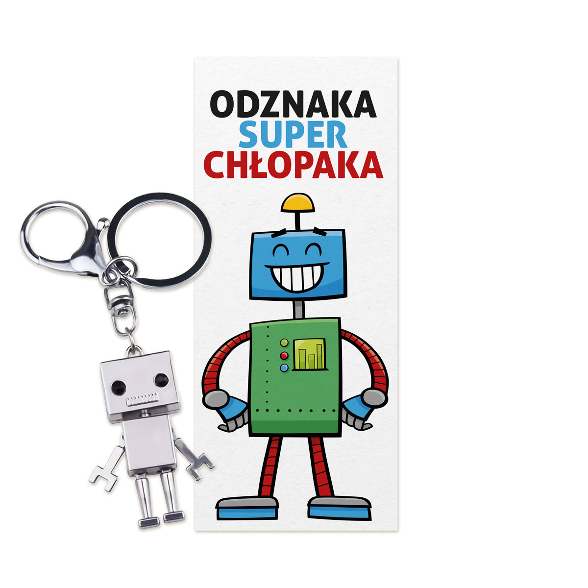 Brelok Robot z karteczką personalizowaną – Odznaka super chłopaka