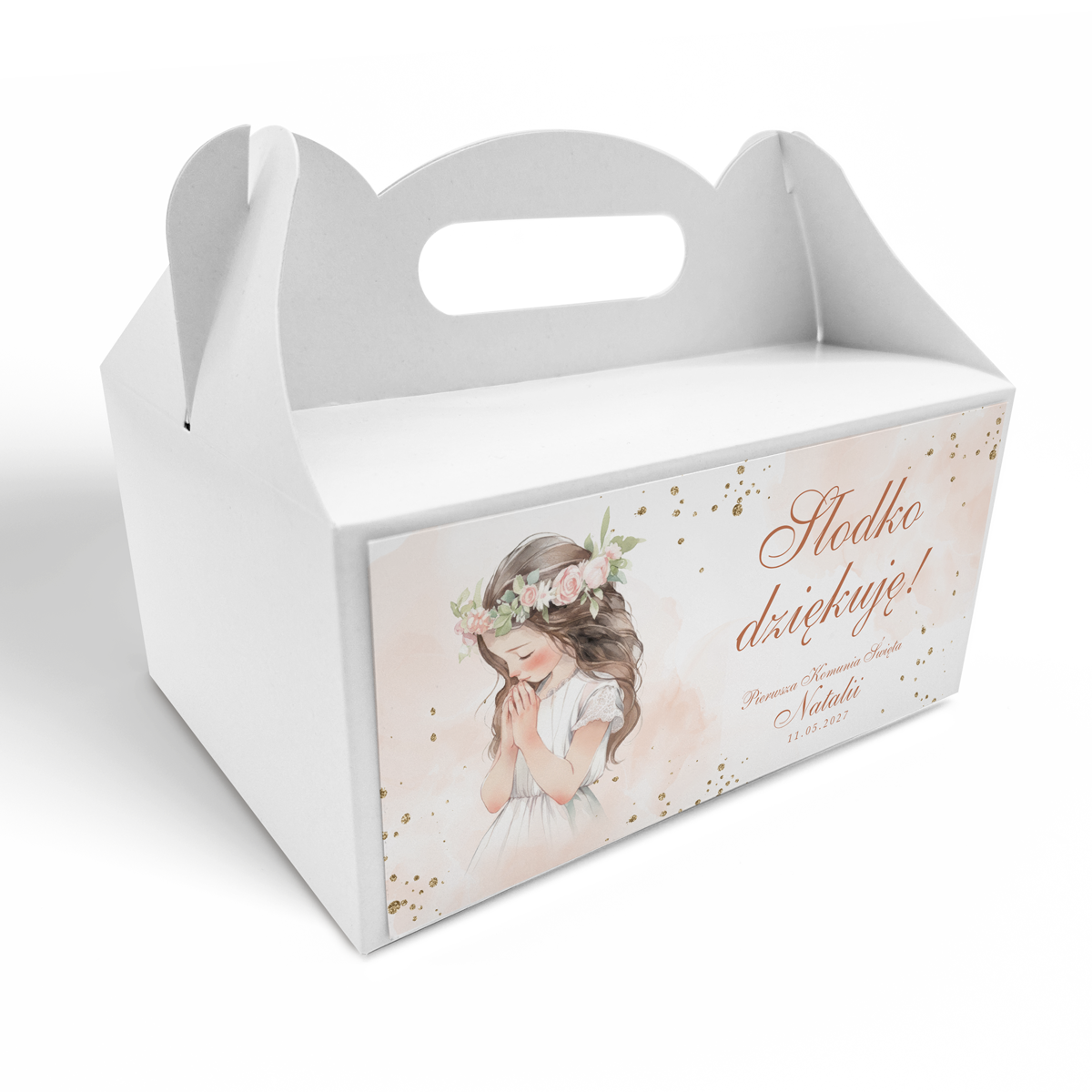 Pudełko na ciasto komunijne – Różany Wianek