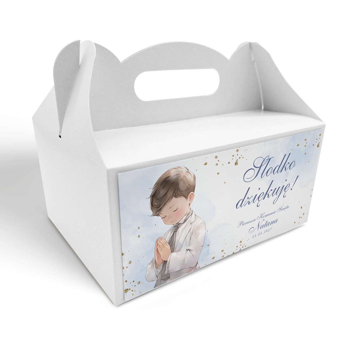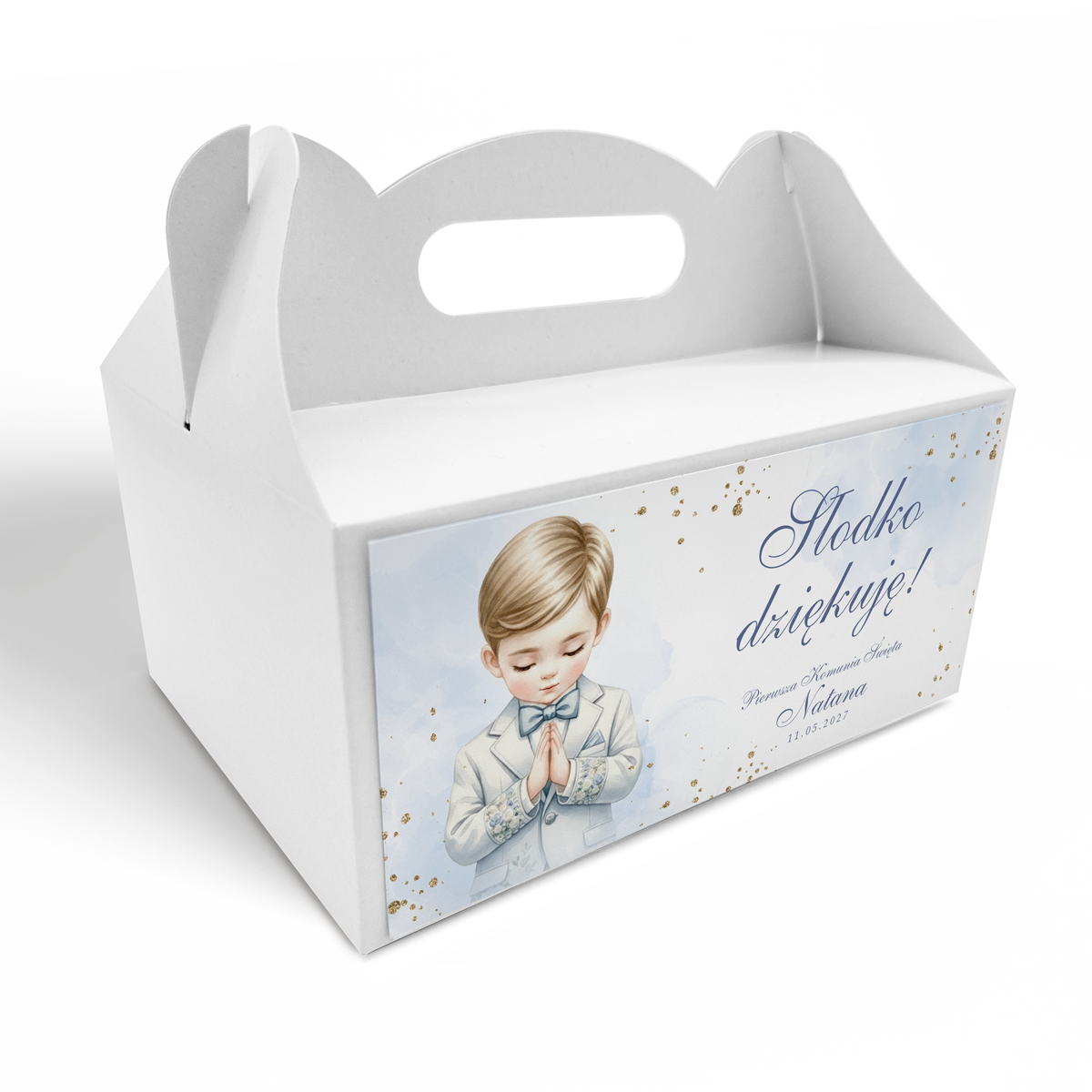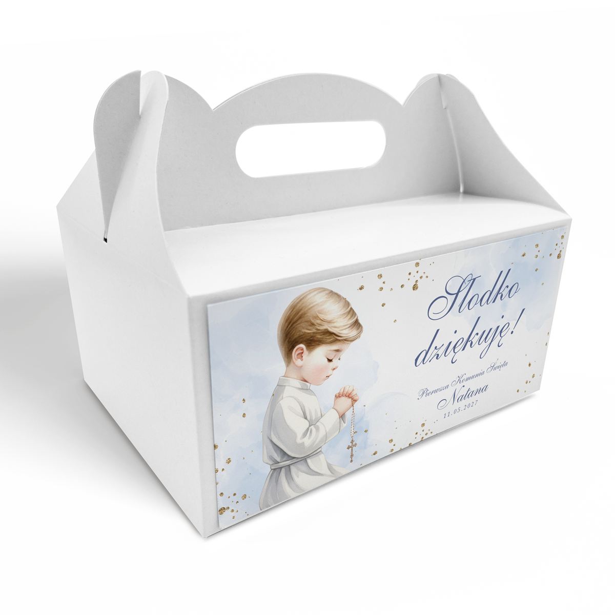 Pudełko na ciasto komunijne – Błękitna Modlitwa