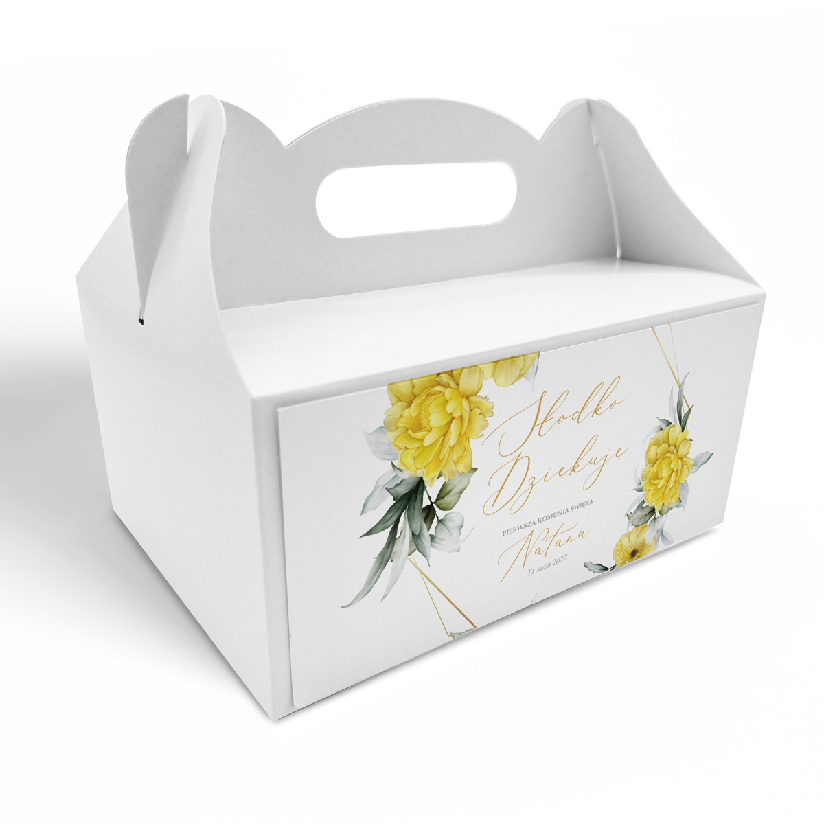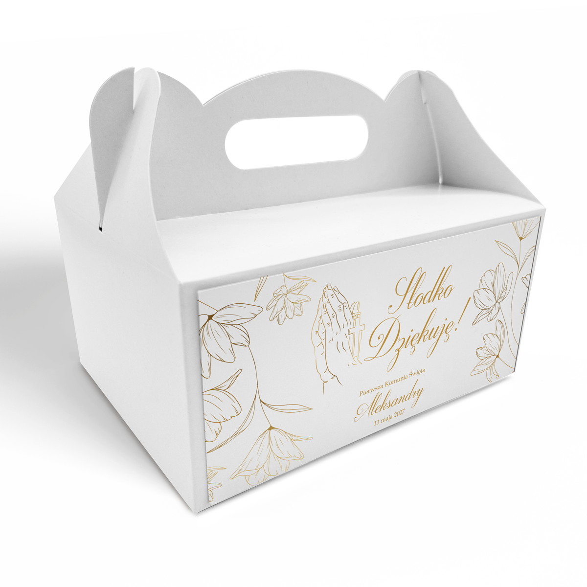 Pudełko na ciasto komunijne – Złote Kwiaty