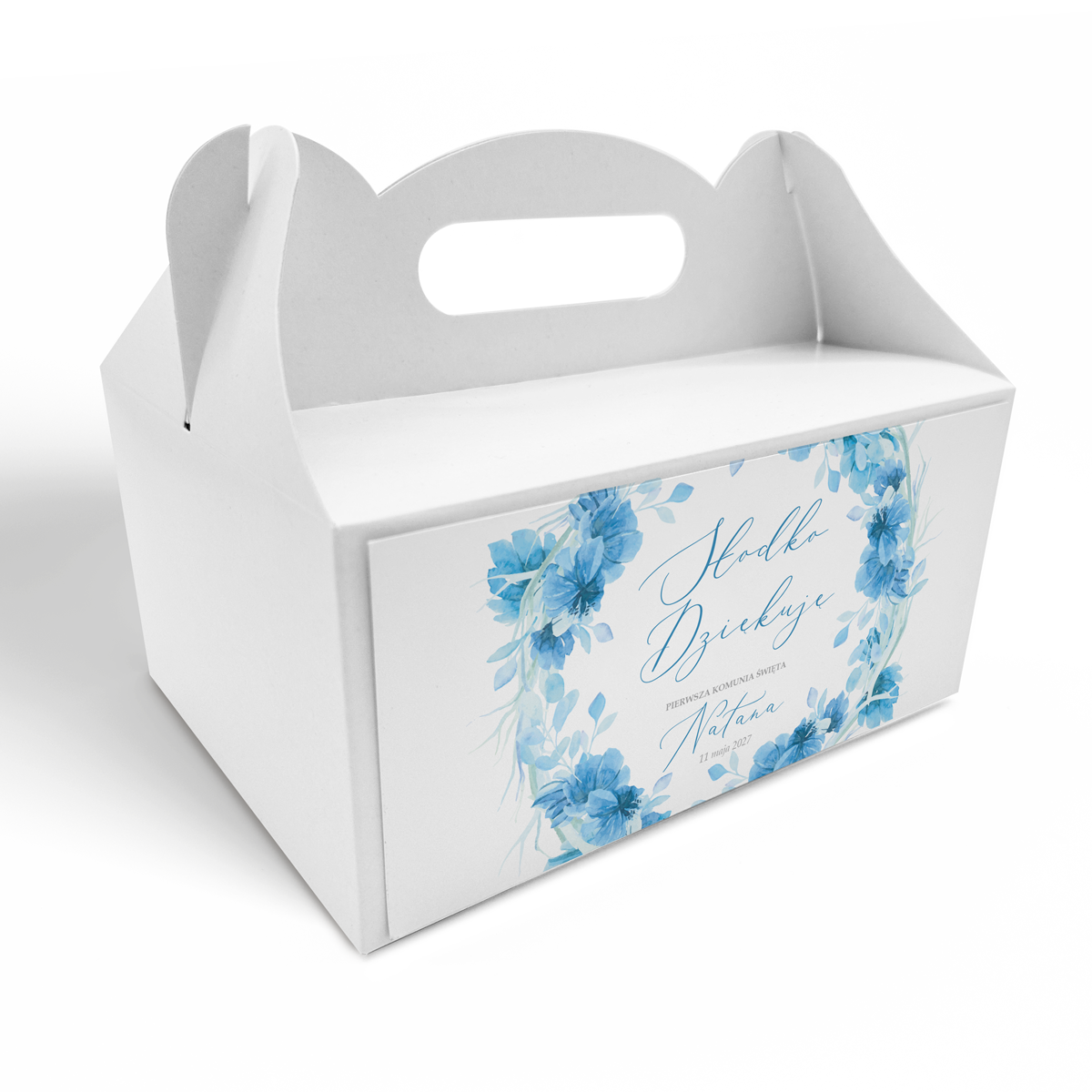 Pudełko na ciasto komunijne – Niebieskie Kwiaty