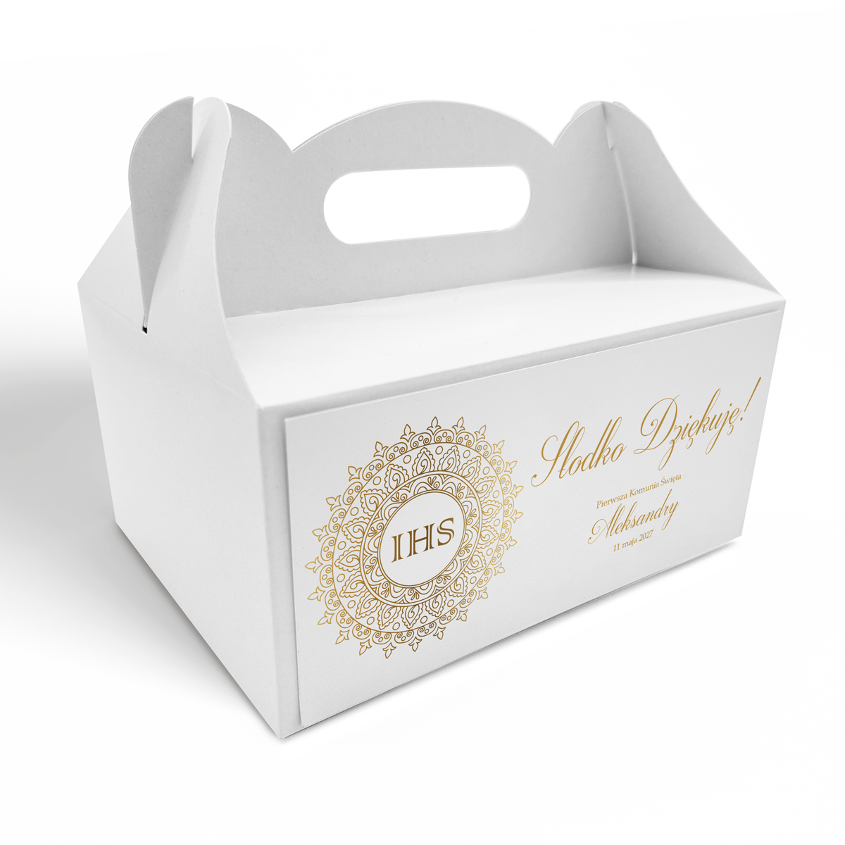 Pudełko na ciasto komunijne – Złoty Ornament
