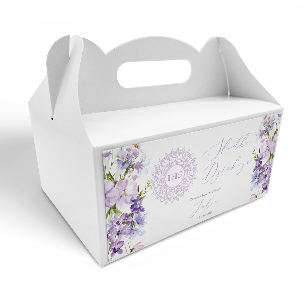 Pudełko na ciasto komunijne – Lawendowa Hostia
