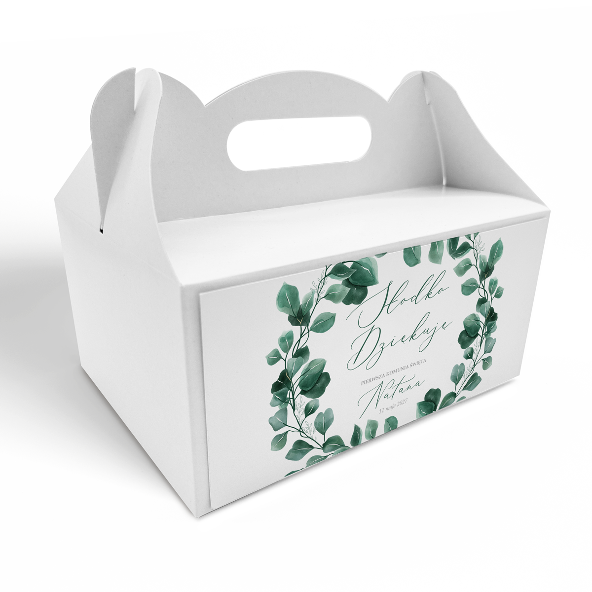 Pudełko na ciasto komunijne – Zielony Eukaliptus
