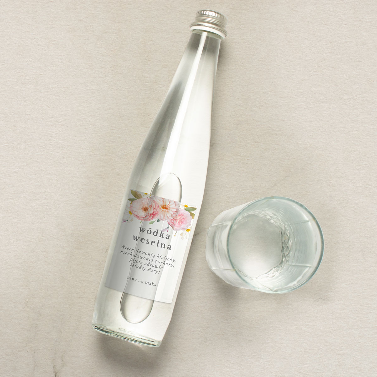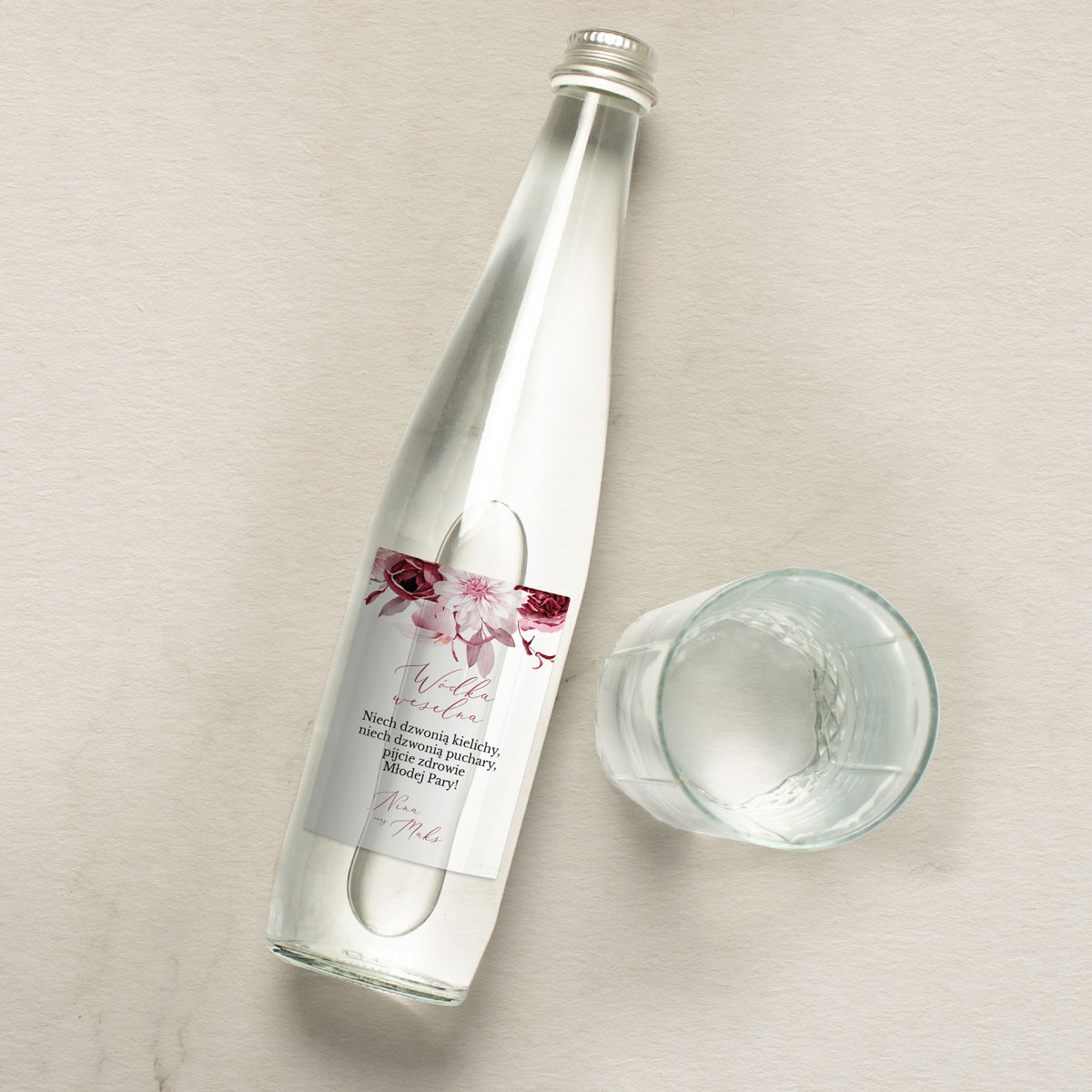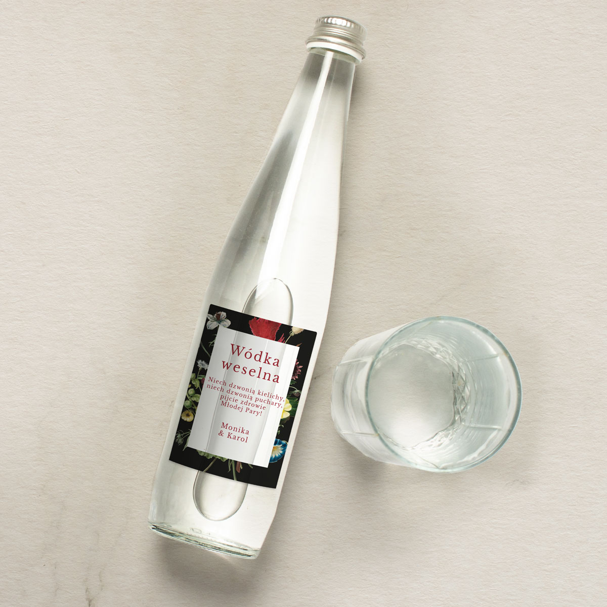 Naklejka na alkohol do zaproszeń Klasyczne z kwiatami wzór 2