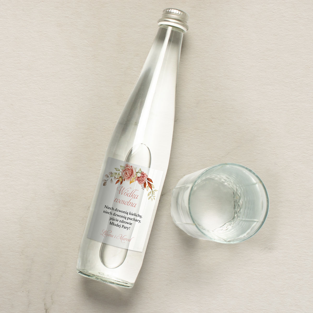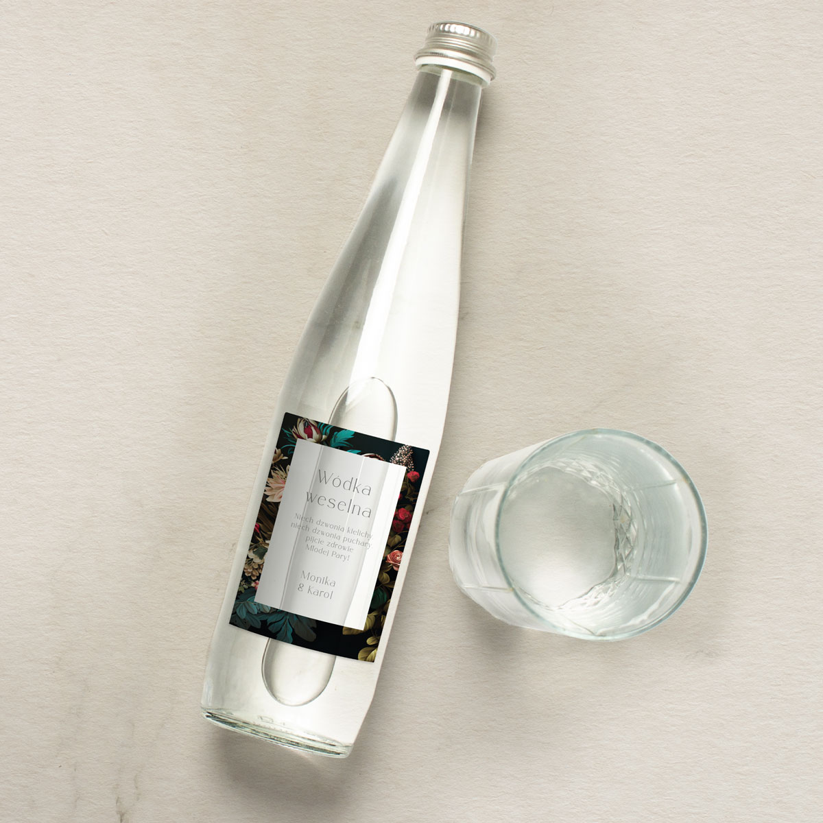 Naklejka na alkohol do zaproszeń Klasyczne z kwiatami wzór 1