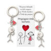 Uroczy zestaw dwóch breloków z motywem serca oraz kartką z romantycznym przesłaniem.