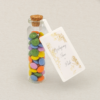 fiolka zawiera 25 g kolorowych cukierków z czekolady mlecznej w polewie