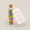 fiolka zawiera 25 g kolorowych cukierków z czekolady mlecznej w polewie