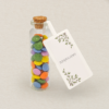 fiolka zawiera 25 g kolorowych cukierków z czekolady mlecznej w polewie