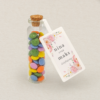 fiolka zawiera 25 g kolorowych cukierków z czekolady mlecznej w polewie