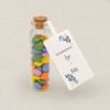 fiolka zawiera 25 g kolorowych cukierków z czekolady mlecznej w polewie
