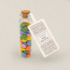 fiolka zawiera 25 g kolorowych cukierków z czekolady mlecznej w polewie
