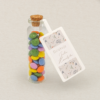 fiolka zawiera 25 g kolorowych cukierków z czekolady mlecznej w polewie