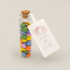 fiolka zawiera 25 g kolorowych cukierków z czekolady mlecznej w polewie