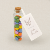 fiolka zawiera 25 g kolorowych cukierków z czekolady mlecznej w polewie