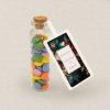 fiolka zawiera 25 g kolorowych cukierków z czekolady mlecznej w polewie