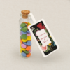 fiolka zawiera 25 g kolorowych cukierków z czekolady mlecznej w polewie