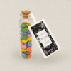 fiolka zawiera 25 g kolorowych cukierków z czekolady mlecznej w polewie