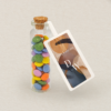 fiolka zawiera 25 g kolorowych cukierków z czekolady mlecznej w polewie