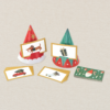 zawiera 6 czapek elfów na gumce oraz 40 kart z czego 21 z nich to karty z ilustracjami. Pozostałe 19 kart to puste karty do samodzielnie wypełnienia.