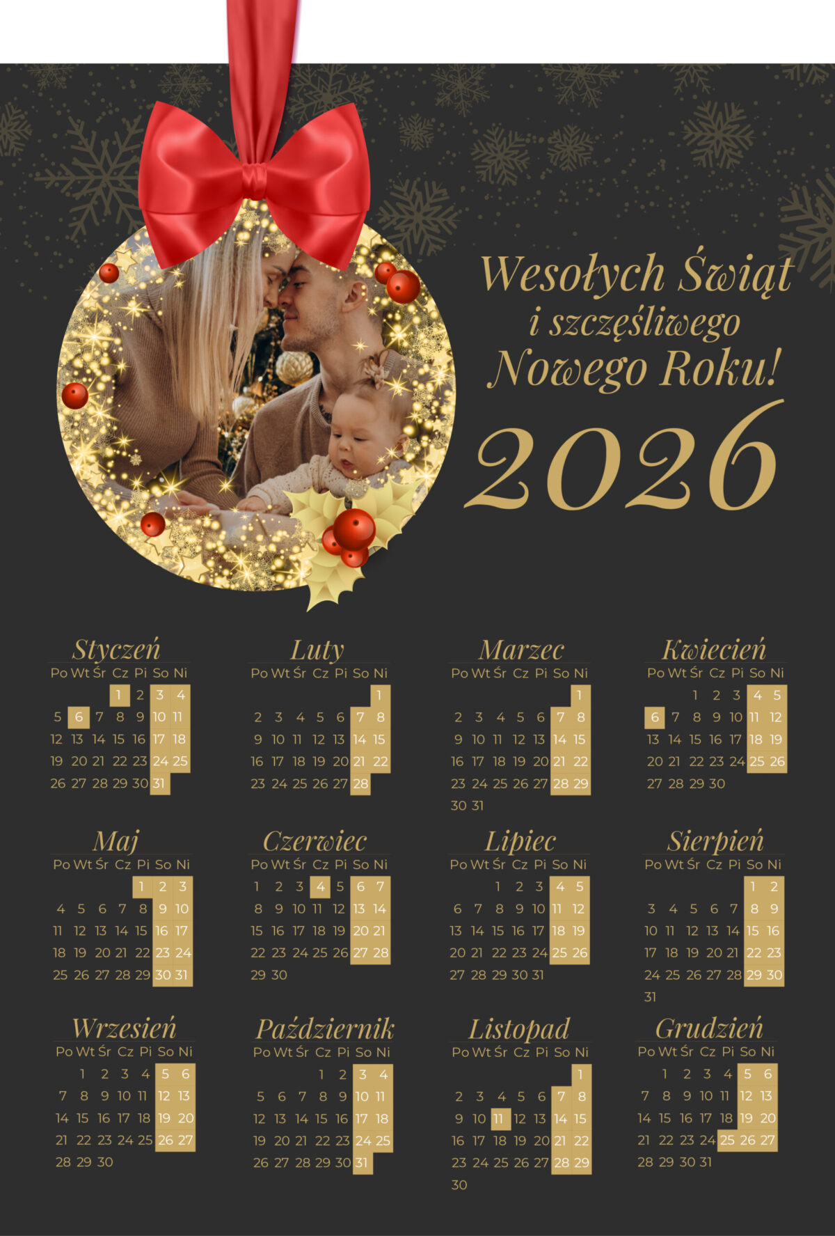 Kalendarz magnetyczny A4 ze zdjęciem – Złota Bombka