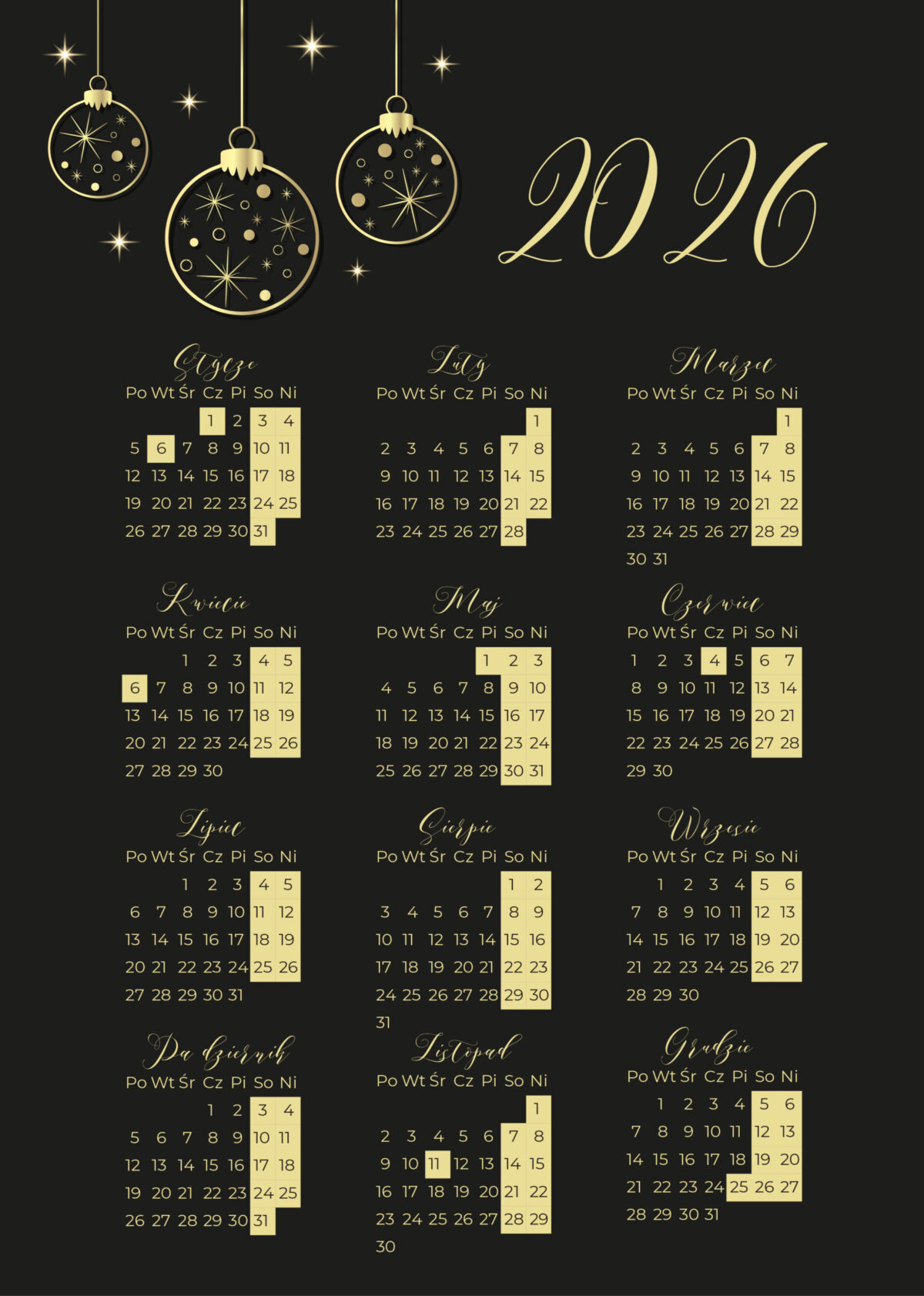 Kalendarz magnetyczny A4 – Złoty Blask