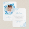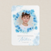 Dwustronna kartka z fotografią dziecka, imieniem i datą uroczystości stanowi piękny sposób, by podziękować Gościom za obecność w tym ważnym dniu.