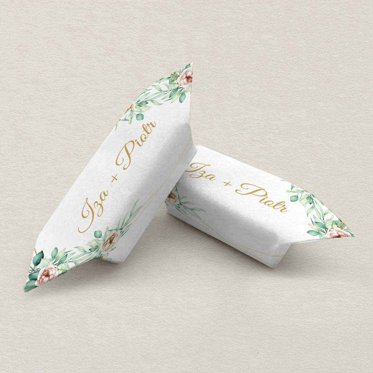 Krówki ślubne do zaproszeń Klasyczne z kwiatami wzór 5