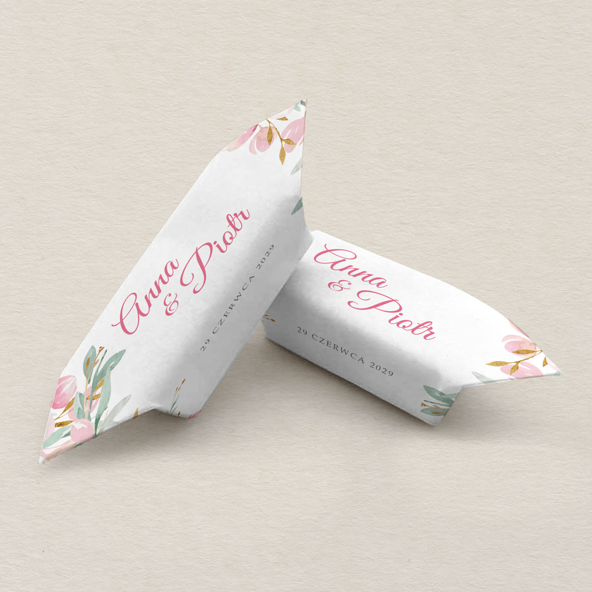Krówki ślubne do zaproszeń Kwiecisty bukiet wzór 2