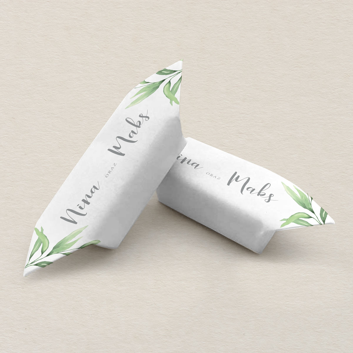 Krówki ślubne do zaproszeń Zielone gałązki wzór 1