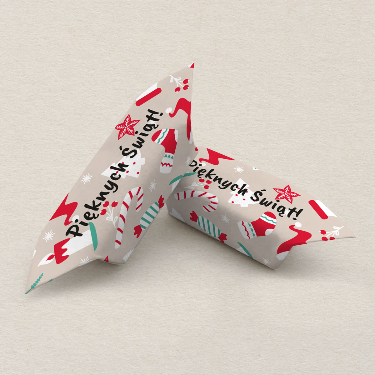 Każda krówka to klasyczny smak w pięknym bożonarodzeniowym wydaniu – choinki, prezenty, śnieżynki i napisy Wesołych Świąt / Merry Christmas.